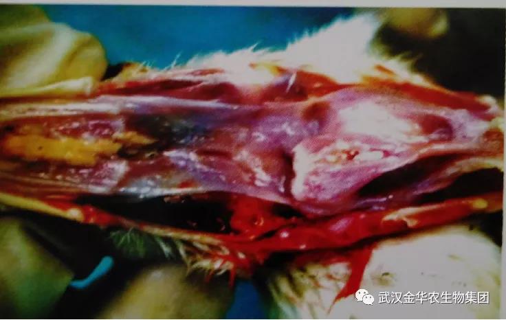 這些粘膜上的潰瘡很難除去,所以粘膜上常遺留出血裂口。潰瘡?fù)砷L(zhǎng)而形成乾酪狀偽膜。肺部偶爾充血而氣囊呈混濁狀。