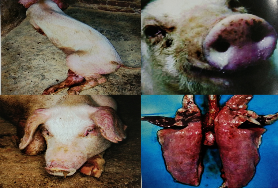 2、急性型:嚴(yán)重呼吸困難,呼吸特別費(fèi)力,有時(shí)張嘴呼吸,繼而體溫下降,窒息死亡。臨死前:鼻孔、嘴流出有泡沫血水。