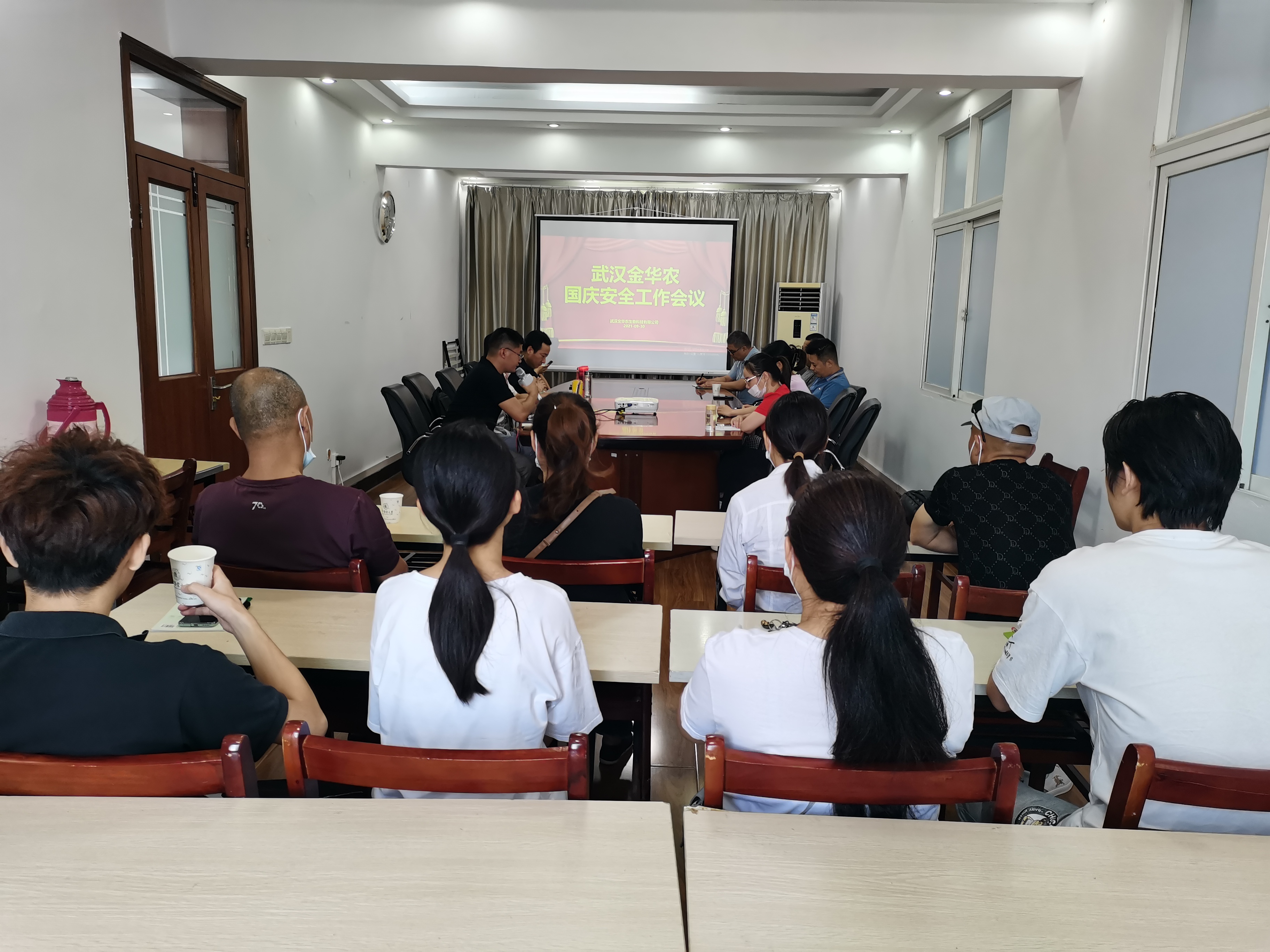 ? ? ?9月30日,公司召開了國慶假期安全防范暨疫情防控工作會議。公司富勝董事長做強調講話,質量部總監(jiān)劉玉學作具體安排。會議由生產部主任付謙主持,營銷部總監(jiān)郭昌盛、人事部總監(jiān)梅寒以及武漢金華農生物內部行政生產后勤全體員工參加會議。