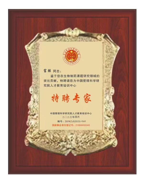 中國(guó)科學(xué)研究院“生物制藥”榮譽(yù)證書(shū)