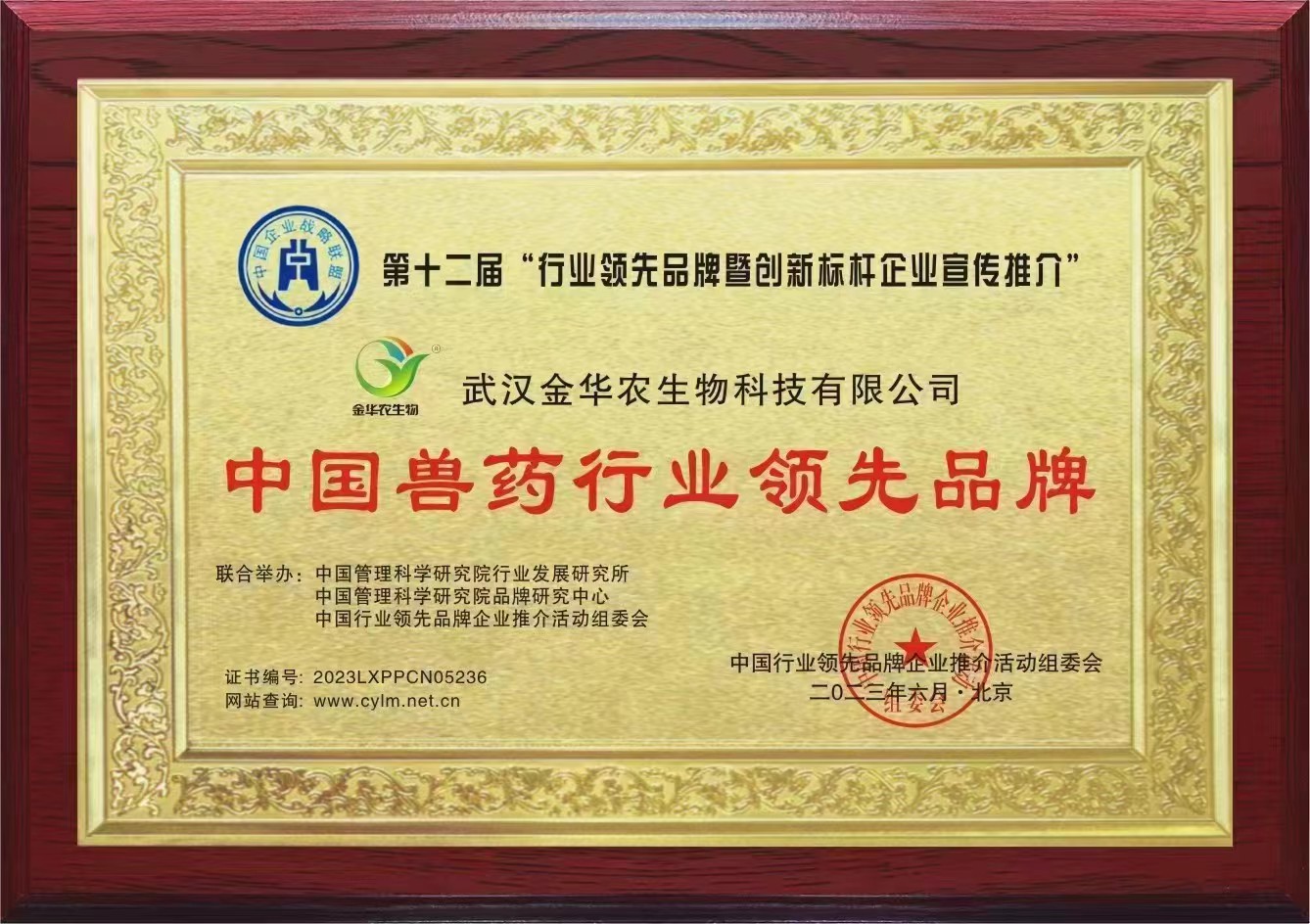 卯兔年未過半,武漢金華農(nóng)已迎來諸多利好消息。公司業(yè)績突飛猛進(jìn),銷量翻番;公司獲得省農(nóng)業(yè)農(nóng)村廳第一批新版GMP獸藥文號、飼料添加劑45個(gè)新品種批號;公司憑借專業(yè)技術(shù)、創(chuàng)新發(fā)展、高效服務(wù),被國家信用平臺、品牌強(qiáng)國計(jì)劃評選為“獸藥飼料添加劑行業(yè)典范企業(yè)”。近日,公司又在中國科學(xué)研究院組織的全國自主品牌研發(fā)、科研創(chuàng)新產(chǎn)品、質(zhì)量品控管理、高校產(chǎn)學(xué)研基地建設(shè)的評選活動中,經(jīng)嚴(yán)格篩選,層層選拔,考核評比,監(jiān)督審查,被中國科學(xué)研究院組委會授予“中國獸藥行業(yè)領(lǐng)先品牌”榮譽(yù)稱號。