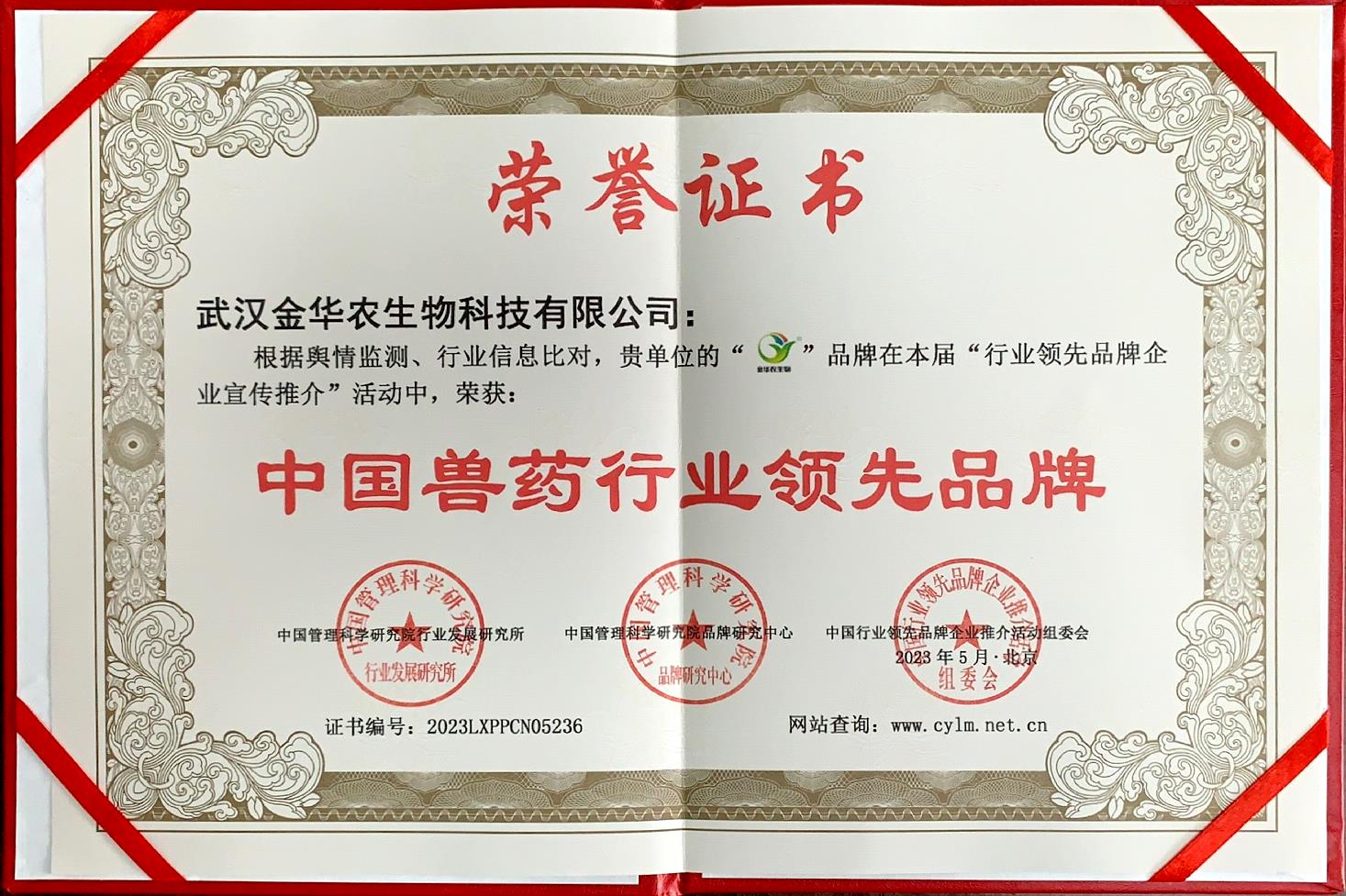 中國獸藥行業(yè)“領(lǐng)先品牌”