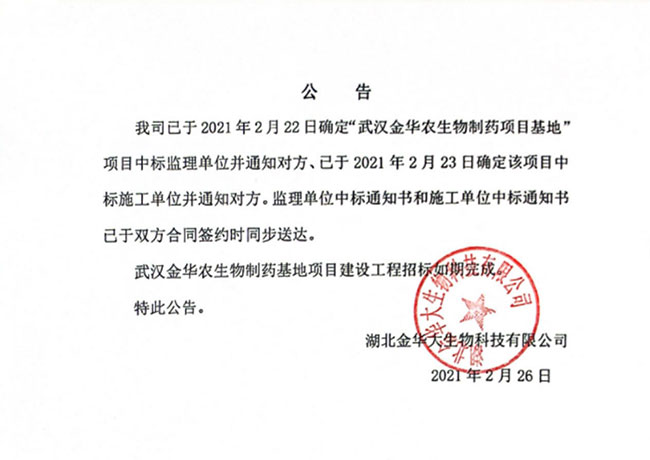 武漢金華農(nóng)生物制藥新項目隆重奠基開工