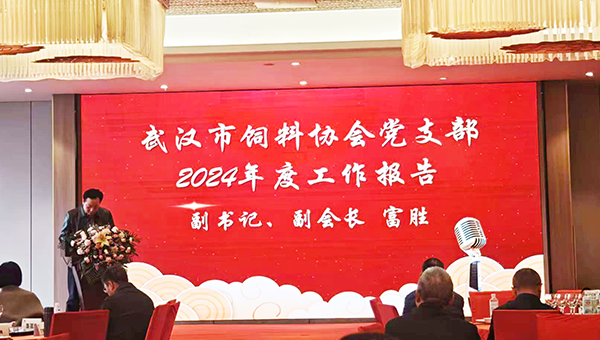 3 月 28 日,武漢市飼料協(xié)會(huì)黨支部副書記、副會(huì)長,富勝同志代表協(xié)會(huì)黨支部向全體會(huì)員作 2024 年度工作報(bào)告,系統(tǒng)總結(jié)了協(xié)會(huì)在黨建引領(lǐng)下取得的顯著成效,并提出未來發(fā)展方向。報(bào)告強(qiáng)調(diào),在市民政局綜合黨委的指導(dǎo)下,協(xié)會(huì)黨支部通過強(qiáng)化組織建設(shè)、科技創(chuàng)新和社會(huì)責(zé)任擔(dān)當(dāng),推動(dòng)武漢市飼料行業(yè)實(shí)現(xiàn)高質(zhì)量發(fā)展,為鄉(xiāng)村振興和食品安全貢獻(xiàn)了 “武漢力量”。