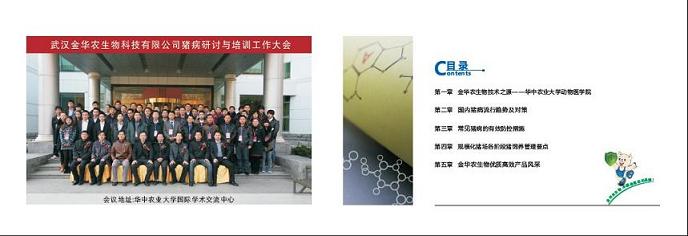 武漢金華農(nóng)生物公司2012年升級版技術(shù)手冊隆重上市,全新的技術(shù)指南和產(chǎn)品宣傳覆蓋面方、內(nèi)容詳實(shí)、知識(shí)豐富、指導(dǎo)極強(qiáng)!本手冊是由華中農(nóng)業(yè)大學(xué)臨床專家與金華農(nóng)公司技術(shù)部講師團(tuán)共同撰寫,詳細(xì)注解了各種多發(fā)豬病的臨床特征、發(fā)病機(jī)理、對癥治療及組合用藥等,方便養(yǎng)殖戶及時(shí)防控豬病、對癥下藥、有效治療。