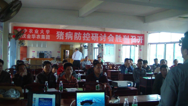 ?“豬是養(yǎng)大的,不是治大的?!?/span>4月28日,武漢金華農(nóng)生物集團(tuán)公司春夏季豬病防控專題研討會(huì)在廣東三個(gè)重點(diǎn)養(yǎng)殖縣市同時(shí)勝利召開,公司專家團(tuán)隊(duì)、技術(shù)部服務(wù)人員、廣東省大區(qū)黎經(jīng)理與來自全省的150多家規(guī)?;B(yǎng)殖場(chǎng)負(fù)責(zé)人以“高效養(yǎng)殖模式、健康用藥理念”為主題,進(jìn)行了專題研討學(xué)習(xí)與經(jīng)驗(yàn)交流。