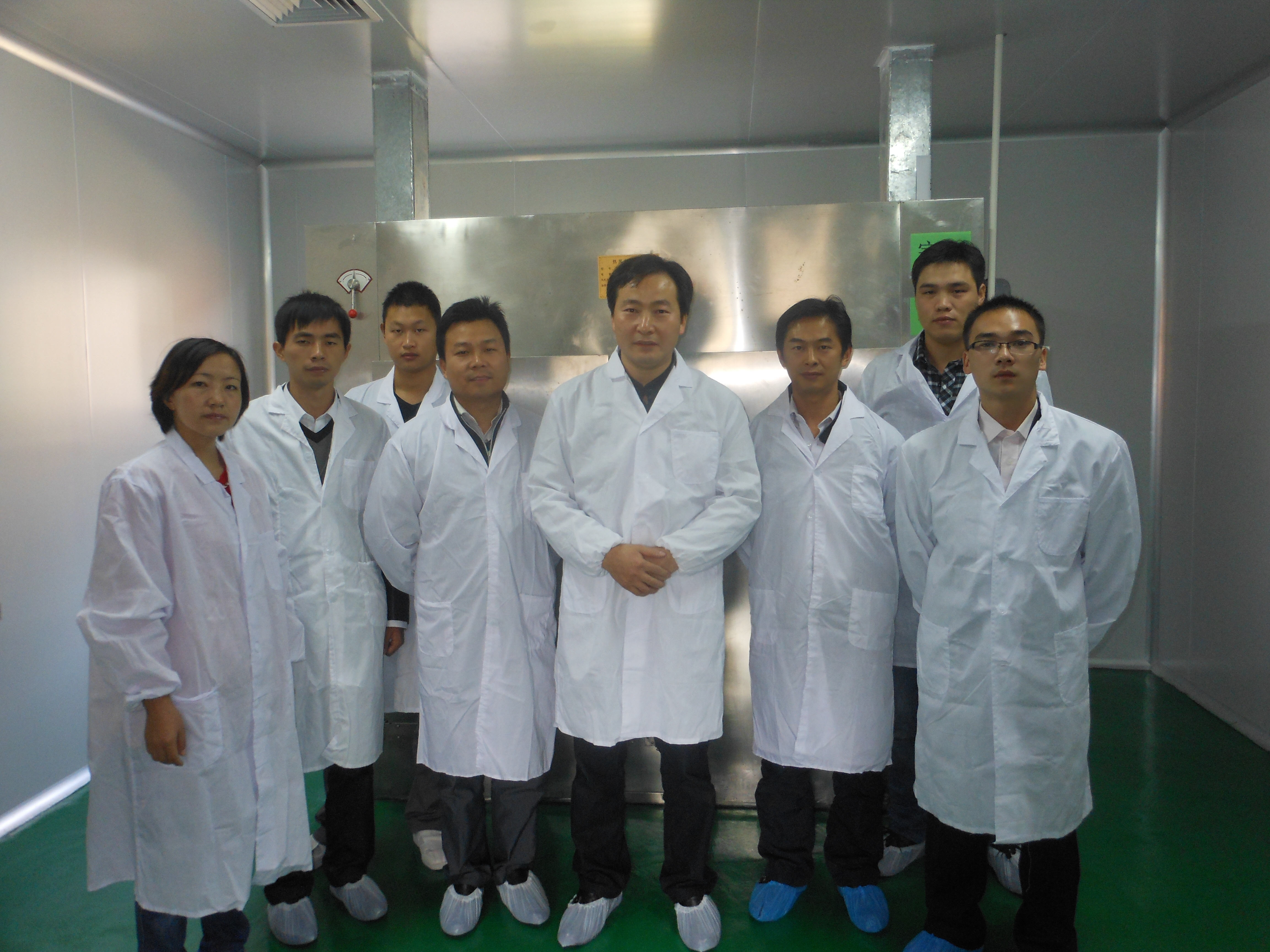 主要參會人員在公司GMP生產(chǎn)車間合影留念