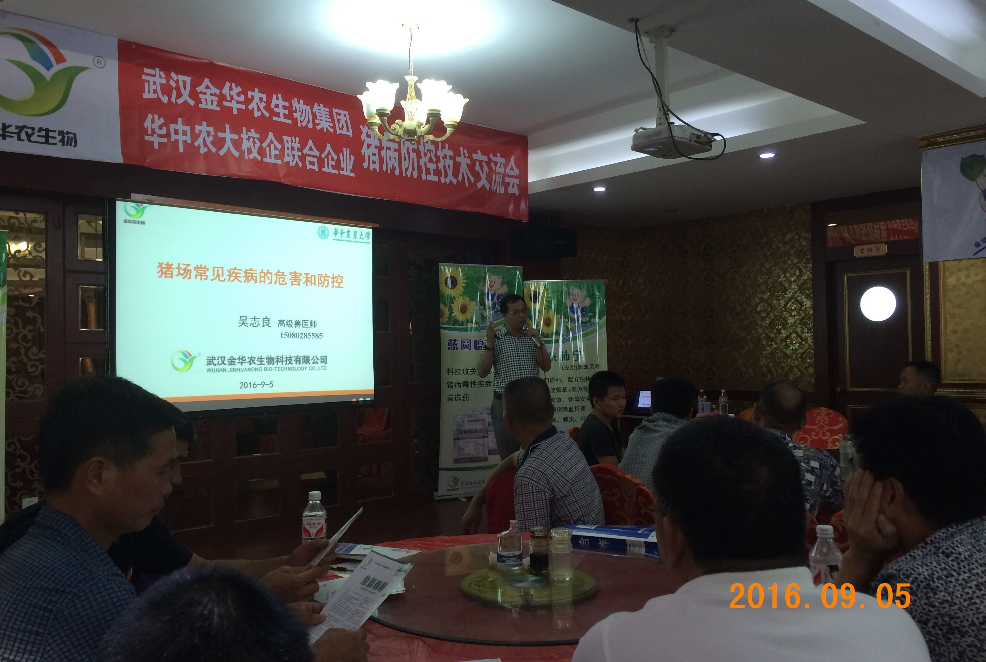 2016年9月5-6日,武漢金華農(nóng)生物科技有限公司“夏秋季常見易發(fā)豬病研討會”在福建南平勝利召開,按公司預(yù)定計劃、陸續(xù)在全國重點(diǎn)省內(nèi)全面展開。公司常務(wù)副總經(jīng)理徐巍博士、公司運(yùn)營部主管李名娥老師等人出席本次會議,會議主講由公司技術(shù)部吳志良老師領(lǐng)銜主講,南平地區(qū)戰(zhàn)略合作伙伴魏總負(fù)責(zé)會議主持、組織與策劃,南平地區(qū)大區(qū)經(jīng)理張老師負(fù)責(zé)會前會后全程跟蹤與回訪。
