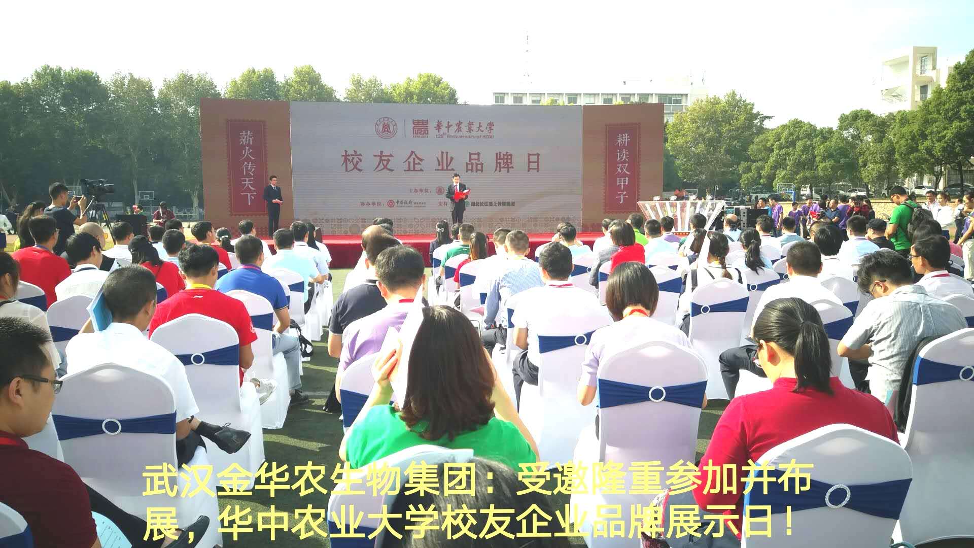 武漢金華農(nóng)生物集團(tuán)應(yīng)邀出席并參加華中農(nóng)業(yè)大學(xué)120周年校慶,及校友企業(yè)品牌展示日活動(dòng)!公司領(lǐng)導(dǎo)富勝總經(jīng)理親自出席,并作為嘉賓代表致辭!武漢金華農(nóng)生物作為“湖北省優(yōu)秀企業(yè)”、“大學(xué)校企合作典范”、“國家科技創(chuàng)新企業(yè)”,過硬質(zhì)量,杰出品牌,顯著療效,良好口碑,受到畜牧行業(yè)與廣大養(yǎng)殖戶朋友一致認(rèn)可與贊美!